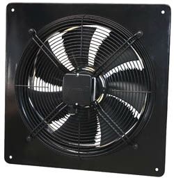 Квадратная пластина для настенного монтажа из оцинкованной стали с порошковым покрытием черного цвета (RAL 9005). Вентиляторы типоразмеров 200-630 оснащаются защитной решеткой, устанавливаемой на стороне забора воздуха. Для вентиляторов типоразмеров 710-1000 защитные решетки поставляются в качестве дополнительной принадлежности.