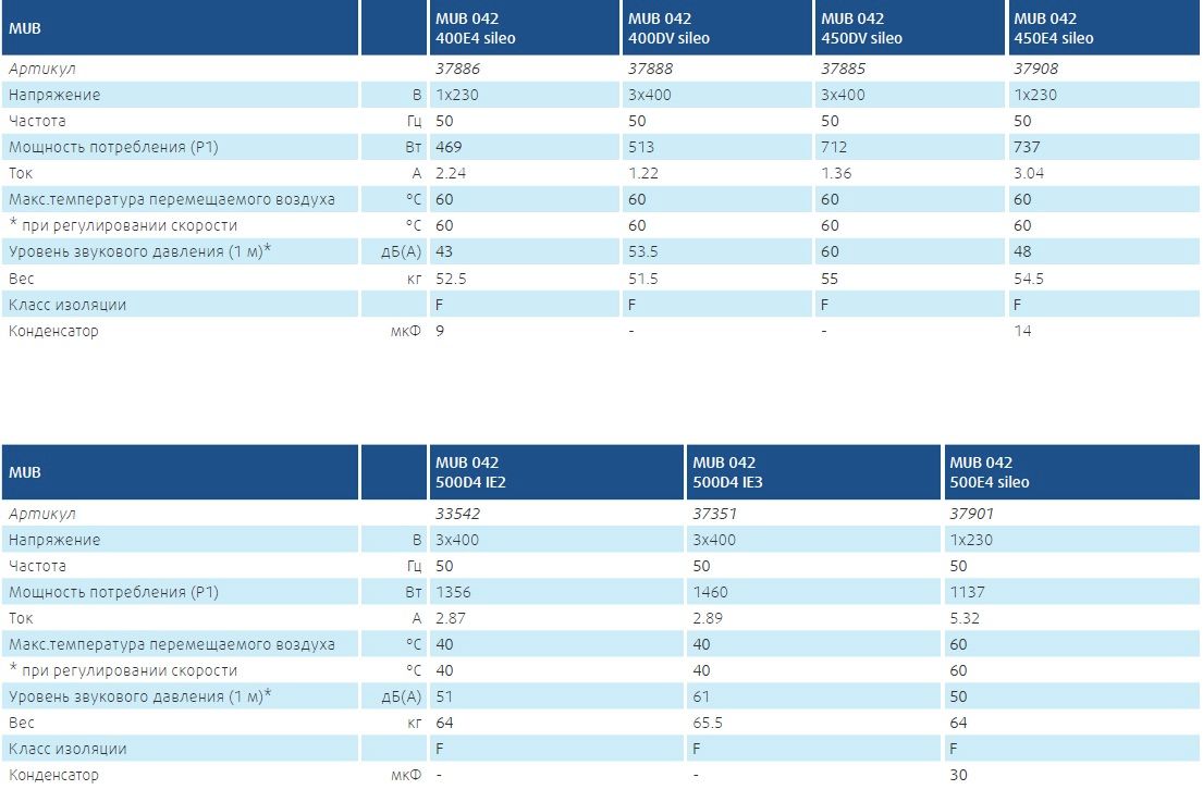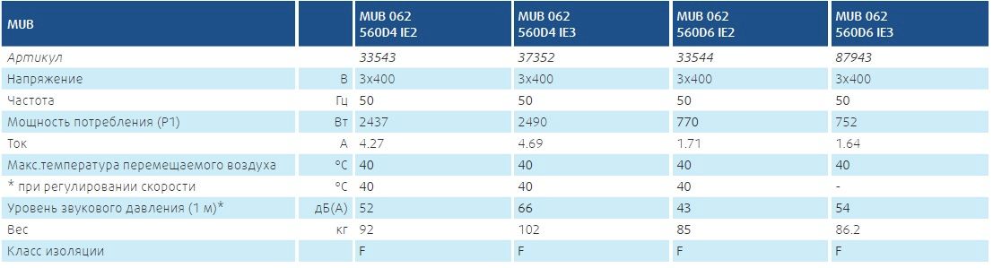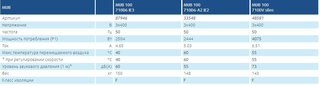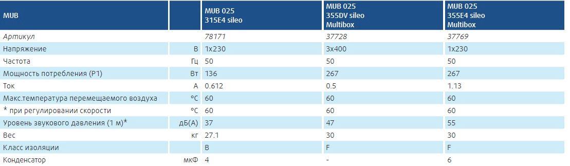 Двигатель: В MUB 355 используются электродвигатели с внешним ротором и рабочим колесом с загнутыми назад лопатками, выполненными из полиамида. Двигатели MUB оснащены встроенными термоконтактами с выводами для подключения к внешнему устройству защиты.