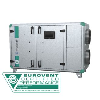 Topvex SR разработаны в соответствии с высокими требованиями по энергосбережению, обеспечивают высокий КПД рекуперации и низкое потребление электроэнергии. Чтобы гарантировать высокую эффективность утилизации тепла, роторный теплообменник разработан для низких скоростей воздуха, и поэтому имеет низкое сопротивление. Приточный и вытяжной фильтры разработаны с минимизацией потерь давления без потерь качества фильтрации. Низкие внутренние потери давления являются важной составляющей для сокращения энергопотребления. Вентиляторы прямого привода с EC технологиями были очевидным выбором из-за высокой эффективности. EC двигатели, при регулировке скорости вращения, имеют на 15-20% ниже энергопотребление по сравнению со стандартными асинхронными двигателями, регулируемыми частотными преобразователями.