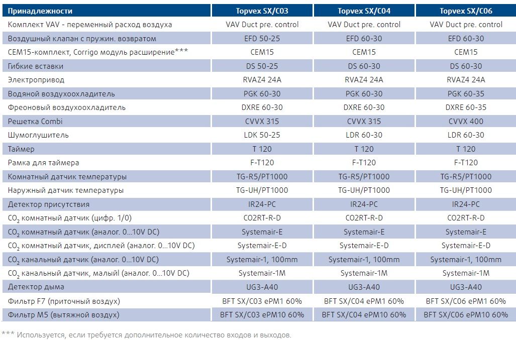 *VAV (Переменный расход воздуха = поддержание постоянного давления в каналах) доступно опционально.