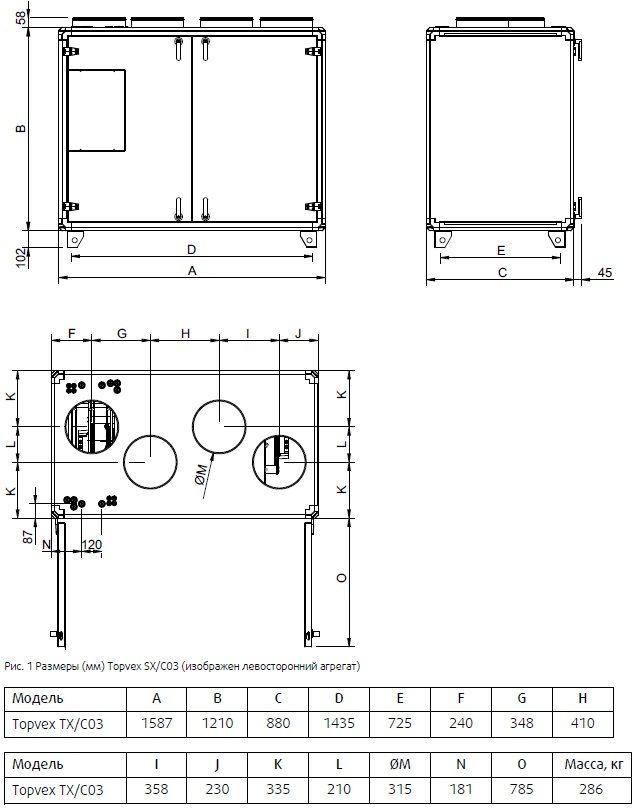 Systemair Topvex TX/C03-L-CAV. Компактный вертикальный приточно-вытяжной агрегат с верхним подключением воздуховодов. Противоточный рекуператор. Без нагревателя. С выносной панелью управления. Левая сторона обслуживания.