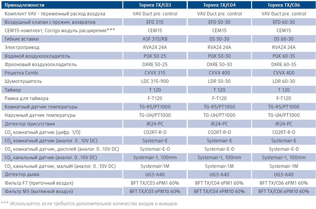 *VAV (Переменный расход воздуха = поддержание постоянного давления в каналах) доступно опционально.